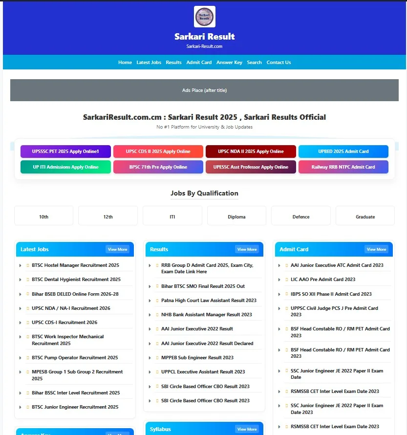 Sarkari Jobs Website PHP Script With Admin Panel. Sarkari Naukri Theme And Php Script Indian Job Php Script.